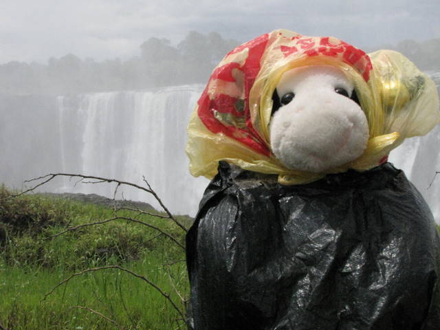 30 december. Omdat een aantal groepsleden een gamedrive willen doen, kan de rest waaronder wij lekker uitslapen tot 7.30 uur. Uiteindelijk is onze (blijkbaar verknalde) biologische wekker in staat om ons om 6.30 uur te wekken. Vandaag op naar onze eindbestemming de Victoria Watervallen in Zimbabwe. Nog even de laatste Botswaanse polars uit geven en go. De uitcheck bij de Botswaanse grens gaat prima. Binnen komen in Zimbabwe heeft wat meer voeten in aarde, aangezien iedereen een visum nodig heeft. Ruim drie kwartier heeft onze douanebeambte nodig, om voor de 16 personen, de benodigde stempels in orde te maken. Zimbabwe heeft geen eigen munt eenheid, dus we kunnen nu betalen met Amerikaanse dollars, Afrikaanse randen, Namibiaanse dollars en Botswaanse polars. Wel goed opletten met de koersen. Bij aankomst gaan we direct naar de watervallen toe. Wij kunnen nu onderschrijven waarom de Victoria Watervallen een van de 7 wereldwonderen is. Wat een ongelofelijk mooi fenomeen. De waterval is 1700 meter lang en op sommige plaatsen meer dan 100 meter hoog. De omgeving is schitterend. Het water spat zo hoog op dat we continu nat worden en Koen om een regenjas vraagt. Bij de Falls is ook het kleinste regenwoud van Afrika. De lodge waar we slapen is verreweg de minste van de tour. De service is slecht, het ontbijt karig, de airco lekt, de gaten zaten in de lakens, zeer gehorig en douchen duurt door gebrek aan water bijna drie kwartier. Kortom misschien een leuk adres voor Alberto Stegeman van SBS 6. Al zullen wij ze misschien nog wel slechter krijgen.