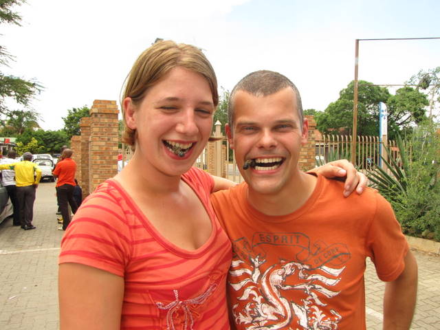 02 januari. Onze laatste Nomad dag begint om 05.00 uur. We ontbijten in Sonny en gaan snel richting de grens. Om 8.00 uur waren we Botswana zonder problemen uit. Helaas de grens met Zuid Afrika duurde door onze twee Zuid Koreaanse mede reizigers wat langer. Pas om 9.00 uur kunnen we verder. Aan het begin van de middag gebeurd weer eens wat interessants. Als onderdeel van de lunch eten we een Afrikaans delicatesse, reuze rups. Het smaakt als gedroogd vlees en we vinden het allebei lekker. Rond 15.00 uur arriveren we op het vliegveld. We nemen afscheid van onze tourleiders Singi en Amen en rest van ons reisgezelschap. De familie die we ontmoet hebben bij de Fishriver Canyon in Namibië staat ons al op te wachten en we krijgen een transfer vanaf het vliegtuig naar hun huis. Hier stellen we ons verder voor en ze zijn echt fantastisch voor ons. Binnen no-time gaan onze vieze spullen in de wasmachine en even later hangt 10 meter kleding te drogen. ’s Avonds gaan we uit eten bij een geweldige Italiaan. We slapen in de huiskamer en kunnen zelfs op de Afrikaanse digitenne Nederland 1 ontvangen. De komende dagen gaan we bijkomen van onze eerste vijf weken reizen en ons voorbereiden op het vervolg in Thailand.