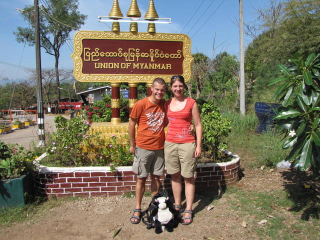 13 januari. Aangezien we morgen willen proberen om naar de markt te gaan in Myanmar, gaan we vandaag alvast die richting op. De eerste trip is met bus 8203 naar Sangkhlaburi. Op veel trajecten in Thailand kan gekozen worden tussen snelle 1e en 2e klas bussen of de langzamere 3e klas. Aangezien het prijsverschil niet groot is gaan we voor de 1e klas die drie uur nodig heeft in plaats van 5 uur. We weten inmiddels dat we overal kunnen opstappen, haltes kennen ze in Thailand niet echt. Helaas lukt het niet de 1e klas bus te krijgen, dus we belanden in de 3e klas. Vijf uur rijden voor de boeg. Tijd genoeg dus om de verslagen bij te werken en een beschrijving te geven hoe een Thaise busreis verloopt. Al na een paar kilometer gaan we tanken en ook de banden worden opgepompt. De gemiddelde snelheid ligt rond de 60 km/h. Reizigers nemen hier ook van alles mee in de bus, auto banden, rollen touw, een super grote televisiedoos en vooral zakken met van alles en nog wat. De omgeving is heuvelachtig, maar helaas in dit deel van Thailand is de lucht niet erg helder ’s ochtends, zodat bergtoppen gedeeltelijk wegvallen. Halverwege de trip maken we een tussenstop op een markt. Hier hebben we 40 minuten de tijd om boodschappen te doen, de benen te strekken en de Thaise droptoiletten te bezoeken. Om de hitte in de bus te verdrijven, worden na de stop de plafondventilators aangezet. In het vervolg van de tocht is de omgeving erg mooi en helder en we zien regelmatig de brede Songkalia rivier. De weg daarentegen wordt wat slechter en steiler. Om hoog gaat het niet erg snel, maar we komen er wel. Omlaag is een avontuur, aan weerzijde van de rijbaan is een betonnen vangrail. De bus heeft geen retarder (extra bergrem) en dat is te ruiken aan verbrand rubber van de remblokken. Onderweg zien we nog een extra plek voor een noodstop, gelukkig hebben we die niet nodig en komen we veilig aan op bestemming. Het uitzicht vanuit het hostel, op de vallei met het Khao Laem kunstmatige meer, is erg mooi. Rustig is het niet, daarvoor zijn er teveel longtailboten met lawaaiige motoren. In de avond wandelen we naar de Saphan Mon brug, dit is de langste (400m) houten brug van Thailand en deze overspant het meer. De staat van de brugleuningen is bijzonder matig, noem het slecht. Van de giftboxen aan het begin en eind van de brug wordt onderhoud betaald. Iets wat doorlopend gebeurt.