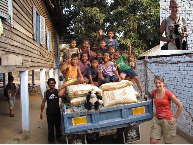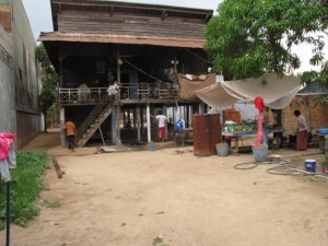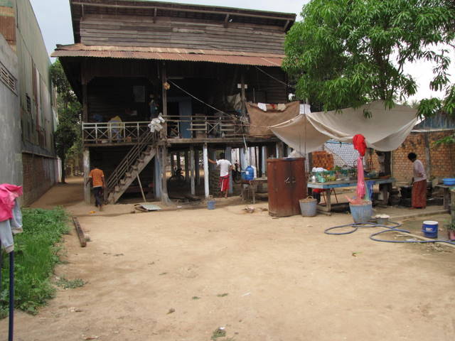 6 maart. Vandaag is het zondag. We hopen een beetje uit te slapen omdat het gisteravond nogal laat geworden is. Helaas de speaker van de openluchtkerkdienst verstoort al om 5.00 uur onze nachtrust. De morgen besteden we aan het uitstippelen van ons verdere reisplan voor Cambodja. We beslissen om over twee dagen door te reizen. In de middag willen we even langs een krokodillenfarm en Koen wil graag op een project kijken om daar misschien spullen aan te geven. We gaan eerst bij het project kijken om te weten wat we kunnen kopen. Eigenlijk wilde we naar het project gaan waar we de dans show drie dagen terug keken, maar we hadden ook andere kinderen zien wuiven twee huizen voor Acodo. We gaan daar eerst heen. In tegenstelling tot bij Acodo waar we zakelijk werden ontvangen, worden we hier gastvrij onthaald door de kinderen en een Engels sprekende lokale vrouw. Binnen krijgen we meer informatie van de vrouw die Mom blijkt te heten. Het project blijkt een CDO (Children Development Organisation) te zijn welke pas halverwege 2010 is opgericht. In het huis zitten 25 kinderen van ouders die niet voor hen kunnen zorgen. Ongeveer de helft komt uit Leap Chass. Dit dorp, op 45 kilometer van Siem Reap was tot vier jaar terug vrij geïsoleerd van de buitenwereld. In dit dorp is geen enkele voorziening. Het doel van dit project blijkt drieledig te zijn. Ten eerste de kinderen krijgen zorg en onderwijs die ze in het dorp niet krijgen, ten tweede wordt er een gemeenschapsruimte gebouwd in het dorp met school en medische voorzieningen. Ten slotte wordt er een boerderij aangelegd waar de plaatselijke bewoners van alles kunnen verbouwen om zelfvoorzienend te worden. Behalve Mom en Sakoun zijn er nog een aantal lokale mensen die op het project helpen. Verder moet alles bij (buitenlandse) vrijwilligers vandaan komen, die er nog niet zoveel zijn. Veel geld komt er ook nog niet binnen, het salaris van Mom gaat volledig op aan de kinderen. Wij willen graag weten wat voor spullen ze het beste kan gebruiken. Ze geeft aan dat keukengerei het meest belangrijke is, dus willen we graag even de keuken zien. Dan komt een veel acuter probleem tevoorschijn. Aan de achterkant van het huis dat op palen gebouwd is, blijkt de vloer van de veranda zo verrot, dat de keuken de tuin in geplaatst is. Deze bestaat nu uit een aantal tafels met een zeil erboven. Het koken op deze plek, voor zoveel mensen, is eigenlijk te gek voor woorden. Dan blijkt ook nog eens dat dit allemaal zal wegspoelen als het regenseizoen over een maand begint. We beslissen dan ook om hier samen met Koen wat aan te gaan doen. We maken de afspraak om morgen terug te komen en samen met haar man een plan van aanpak te maken.