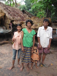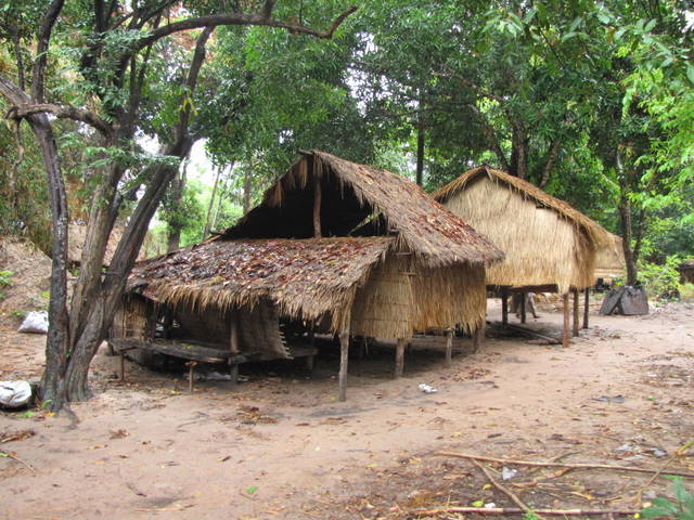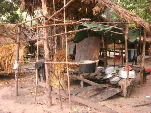 We gaan wat eten met ze. En doen hun gebruiken na. In kleermakerszit een hapje eten op een houten plank en blote voeten. Oef, wij zijn niet zo lenig. Ons eten bestaat uit rijst, groenten, tomaat en vlees, best smakelijk. Als we weg lopen zien we een bosje veren liggen van de hoen die we zojuist gegeten hebben… We wandelen verder door het dorp. De gemeenschap bestaat in dit deel uit 80 families. In een ander deel zijn er nog 40 families. Een familie kan soms wel 12 kinderen hebben, terwijl de huizen soms nog geen 15 vierkante meter groot zijn. De rijkste inwoners hebben een paar uur per week elektriciteit van een generator. In het dorp maken we foto´s van alle aanwezige ouders, van wie de kinderen in het CDO huis zitten. Eén vader is nog nooit op de foto geweest en was dan ook erg verlegen. We lopen verder langs uiterst primitieve hutten waar de mensen leven en zijn zwaar onder de indruk. Groeten uit de Rimboe, maar dan live.