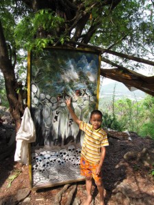 Wij laten onze fotocollage zien en ze blijven lachen en wijzen naar de foto’s en naar ons. Ze snappen het begrip foto duidelijk niet. Wij staan daar op de foto en we zijn er in het echt. We hebben op de foto ieder ons kleine neefje op de arm, maar dat dat niet onze eigen kinderen zijn blijft toch wel vreemd voor ze. Wij praten wat met elkaar en dan gaat er één lachen. Wij verstaan haar niet maar we doen verder niets bijzonders. Juist om het feit dat ze ons niet kan verstaan moet ze lachen. Een ander opvallend punt is dat ze zeiden dat het bij ons koud is, want wij zijn blank en hebben haren.