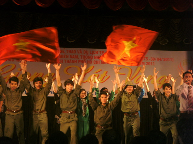Na afloop kijken we nog even naar een stijldansles. Hier ontmoeten we Karen uit Vancouver en Leo uit Seattle. Als de dansles is afgelopen horen we vanaf de tweede verdieping van het theater ook nog muziek. We beslissen even te gaan kijken en komen dan midden in iets wat nog het meest lijkt op een talentshow. In plaats van weggestuurd te worden krijgen we plaatsen toegewezen vlak achter de jury. Ontzettend leuke danceacts worden afgewisseld met individuele zangers. Wij vormen met onze verschijning een act op zich. De cameraman die de show vastlegt, neemt ons ook op en we worden vastgelegd op verschillende fotocamera’s. We vermaken ons prima met zijn vieren ondanks dat er soms ook wat mindere optredens tussen zitten. Tussendoor krijgen we nog een flesje water aangeboden. Uiteindelijk blijken er 36 acts te zijn. Maar vanaf de 26e begint de zaal leeg te stromen. Het is dan al half 11 als we ook beslissen om op te stappen. Als we de zaal uitlopen krijgen de dames in ons gezelschap een bos bloemen aangeboden. We fietsen door de bijna verlaten straten van Ho Chi Minh terug naar ons guesthouse. Als we Karen willen toevoegen op Facebook blijkt dat deze site in Vietnam door de regering geblokkeerd wordt. Ook dit is Vietnam.