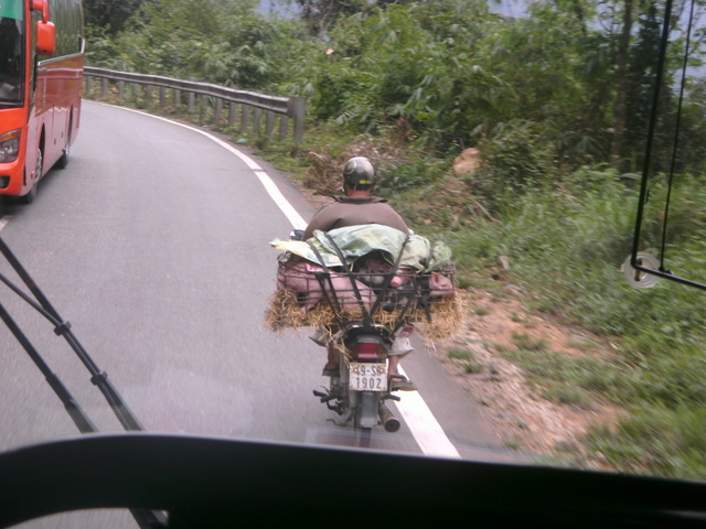 29 maart. Vroeg in de morgen fietsen we richting het 10 kilometer verderop gelegen busstation. Wij hebben voorlopig even genoeg van het gezoem en getoeter van het vele verkeer in de stad, Met de bus gaan we ons 300 kilometer verplaatsen naar Dà Lat in centraal Vietnam. Een best mooie busrit. Het eerste stuk door de stad nog niet, maar daarna langs rubber en koffieplantages en veel groene frisse stukken. We gaan het gebergte in. Hele mooie beboste bergen en heuvels. Smalle weggetjes met soms spannende inhaalacties. Zeker voor ons aangezien we helemaal voorin de bus zitten. Het grote voordeel van deze plek is het werkelijk schitterende panoramische uitzicht. Dit deel van Vietnam is enorm vruchtbaar. Er worden dan ook aan de voet van de heuvels veel gewassen geteeld. We zien weer een grote verscheidenheid aan beladingen van voertuigen. De meest opvallende zijn een vrachtwagen met boomstammen van een ruime meter in doorsnede, twee personen met een autoruit en een spiegel van 2×1 op een scooter en varkentjes transport op een scooter. De laatste tien kilometer gaat redelijk steil de hoogte in. Pas rond vijf uur komt onze eindbestemming in zicht, we hebben er dan acht uur bussen op zitten. Stappen we uit, brrrr, het is koud hier. Het kwik staat niet hoger dan 15 graden, ongeveer de helft van de temperatuur in Ho Chi Minh. Na wat rondfietsen door de stad vinden we een leuk hostel voor de komende twee nachten.