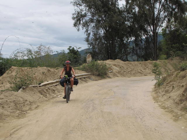 Zo wordt het 2 april. Het slapen ging heel redelijk, in ieder geval veel beter dan in de Thaise treinen op een softseater. De trein heeft een ruim halfuurtje vertraging, dus we verplaatsen ons van de slaapcabine naar de luxere zitplekken. Eenmaal aangekomen in Da Nang krijgen we onze fietsen pas terug na bijbetaling van 10.000 Dong. We gaan zoeken naar een vullend ontbijt. Aangezien de bakkerij en restaurants uit de Roughguide niet meer aanwezig zijn, vinden we onze plek in een restaurant aan de rivier. Een lekker kippensoep met brood wordt ons portie. Daarna fietsen we naar Hoi An. De start over de Han brug is leuk, maar verder is de dertig kilometer lange weg eigenlijk het benoemen niet waard. Na de vondst van een hotel gaan we lekker relaxen. In de avond gaan we Hoi An ontdekken, wat een heerlijke plaats om te wandelen. Doordat het plaatsje weinig last heeft gahad van de oorlogen is het nog erg authentiek. In de rivier zijn kleurig verlichte Chinese sculpturen te zien. Voor Koen kopen we zijn eigen Non La Hoed. We eten in het beetje dure Lighthouse restaurant aan de overkant van de rivier.