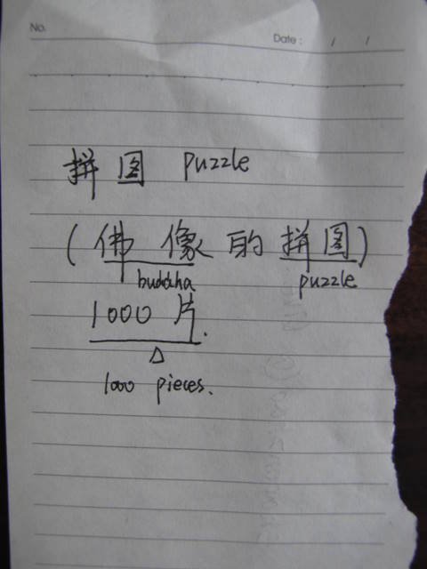 We eten in een lokaalstalletje, waar het maar goed is dat bij het eten een pot Chinese thee wordt geserveerd, aangezien het een best pittige noodle soep is. Als we verder lopen om nog even rustig wat avondfoto’s te maken krijgt onze avond een onverwachte wending. We raken aan de praat met een groepje Chinese scholieren. Zij zijn een week in Yangshou om Engels te leren, door te praten met buitenlandse toeristen. Aangezien we voor de deur staan bij het restaurant met de gele M, gaan we samen een ijsje eten. Aan de hand van onze collage vertellen wij over Nederland en zij vertellen ons over China. We vragen ze naar leuke plaatsen en al snel hebben we in het Chinees geschreven goede tips. Het is erg gezellig, vooral als we Koen gaan introduceren. Ze zijn opslag verliefd op hem. Koen grijpt gelijk zijn kans en maakt gebruik van zijn charmes om de namen van de dames te achterhalen. Hij is namelijk druk aan het zoeken naar iemand die Hu als achternaam heeft. Het blaadje is al snel vol met Chinese tekens, de uitspraak en Engelse vertaling, maar helaas geen van de dames heet Hu. Maar ja, de meiden willen Koen graag helpen en zeggen dat, in het door hun school afgehuurde hotel, waar ze met 140 scholieren slapen, een meisje is met de familienaam Hu. We worden uitgenodigd om mee te gaan. Daar aangekomen blijkt dat het meisje met andere toeristen in de stad uit eten is. We wachten op haar. Ondertussen ziet Koen zijn kans schoon om te achterhalen wat “puzzel van duizend stukjes met Boeddha afbeelding” in het Chinees betekend. Uiteraard wordt dat voor hem ook even opgeschreven in het Chinees. De dames vinden hem zo lief dat ze hem als zoon willen hebben en geven hem zijn eigen Chinese naam. Uiteraard gaan wij daar niet mee akkoord. We maken nog kennis met de docenten van de school, die we ontmoeten in een hotelkamer. We zijn met zijn drietjes een bezienswaardigheid en op een gegeven moment staan we met 25 mensen in de hotelkamer. Uiteindelijk komt het Hu meisje in het hotel. Koen wordt geïntroduceerd en met haar paspoort gaat ze op de foto met hem. Opdracht geslaagd! Als we het hotel na de nodige foto’s verlaten is het ondertussen 23.00 uur. Wederom laat, maar de avond is wel zeer geslaagd.