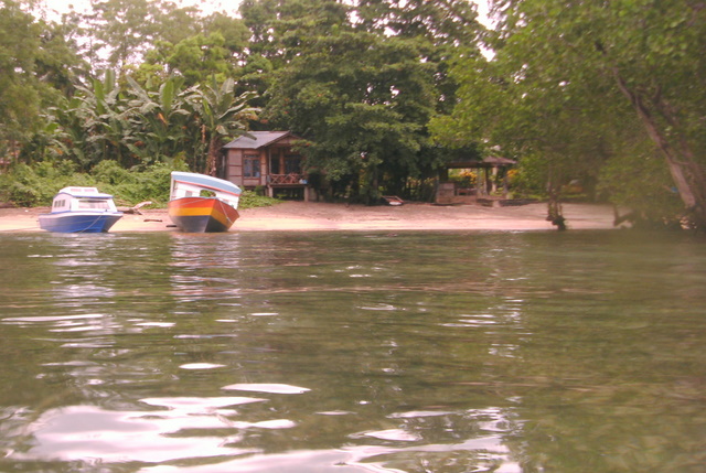 10 juni. De moskee’s achter het hotel maken ons al om 4.00 wakker, maar gelukkig kunnen we na een halfuurtje onze slaap weer oppakken. Om 9.00 uur zitten we weer aan de ontbijttafel. Aangezien we graag willen gaan relaxen, snorkelen en duiken op Bunaken Island, zoeken we via internet en de Lonely Planet naar een geschikte slaapplaats. Uiteindelijk komen we in het hotel iemand tegen die ons Daniels resort aanprijst en we beslissen daarheen te gaan aangezien de andere een beetje ver boven budget liggen. Na snel de tassen ingepakt te hebben en nog wat boodschappen gehaald te hebben wachten we op de man die ons met zijn auto naar de boot brengt. Dit blijkt een speedboot te zijn die tussen de mangrove in het lage water op ons ligt te wachten. De tocht over de zee naar Bunaken gaat binnen het halve uur. In plaats van een uur met de publieke boot. We worden aan het strand van ons resort afgezet en krijgen de sleutel van een hut aan de rand van het strand. Met de boten voor de deur, vol uitzicht op het water en de mangrove een mooie stek.
