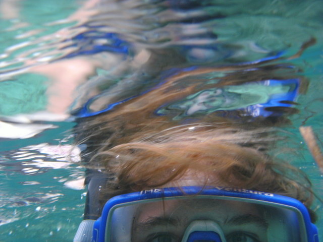 13 juni. De dag begint een beetje wazig. Erwin heeft gisteren met zijn instructeur afgesproken vandaag een advance duik te gaan maken maar met een andere gids. Als hij zich klaarmaakt en vraagt hoe het geregeld is, blijkt er niemand iets te weten. Er wordt gezegd dat een gids zijn spullen pakt en dan naar de boot komt. Als de boot op het punt staat te vertrekken zijn er nog geen spullen en geen gids. Als we wederom om uitleg vragen wordt de enige gids van de boot geroepen en gaat Erwin met hem mee. Een beetje vaag allemaal. Gelukkig is de duik, die door lichte stroming langs een mooie muur gaat wel erg goed. Het zicht is ontzettend goed, er kan tot dertig meter ver gekeken worden. Verschillende grote vissen, die nog het meest lijken op dolfijnen met een platte neus, passeren de revue evenals de eerste haai. De haai is wat ver weg maar net voor het einde van de duik wordt een tweede haai gespot op 10 meter afstand. Helaas komt tijdens de veiligheidsstop op vijf meter Bunakens grootste probleem langs drijven. Vele plasticflesjes, plastictasjes en ander afval drijft boven en naast ons. Vreselijk zonde! De duik zit erop en er wordt terug gegaan naar het resort. In de tussentijd heeft Rhianne een aantal hele mooie schelpen verzameld, waarvan we er een aantal gaan meenemen. Na de lunch gaan we snorkelen doordat het nu hoogtij is kunnen we veel verder dan de eerste keer en ook meer zien.