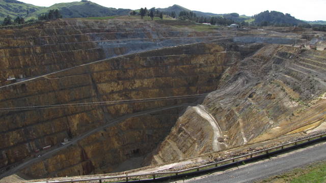 Het is tijd om Nieuw-Zeeland eens wat beter te gaan bekijken. Voor iets meer dan honderd dollar krijgen we voor twee dagen een echte Toyota Platz met automaat mee. Weliswaar een wat ouder beestje met de nodige roestplekjes, maar we kunnen ermee op pad. We rijden makkelijk vanaf het verhuurstation de expressway op. Het duurt even voordat we de drukte uit zijn, maar dan komt het overweldigende landschap van Nieuw-Zeeland. Ruige en glooiende bergen veelal met grasland. Veel wordt hiervan als weiland gebruikt voor koeien of schapen. Na een tijdje gereden te hebben is de eerste sanitaire stop in Waihi. Hier vinden we bij de I-site, oftewel informatiecentrum een museum over de goudmijnen in de stad. Ze zijn lang geleden gestart met het afgraven van de mijn en hier is een dorp naast gegroeid. De Martha mijn is nu een grote en diepe afgraving, die van bovenaf te zien is. Een interessante tussenstop.