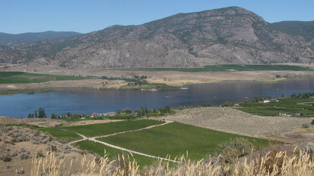 Dit klinkt zeer interessant maar het was niet veel meer dan een vogelspotplek bij het Okanagan Lake. We komen dan ook niet verder dan een aantal eenden en meerkoeten. Dan maar gewoon genieten van de stilte en de ruimte. Via een kleine weg strak langs het meer en een berghelling rijden we Penticton in. In het plaatselijke toeristenbureau vragen we informatie over de omliggende campings en we beslissen door te rijden naar Kelowna. Maar niet voor we in het bijhorende wijncentrum een Snow Tropics Vidal uit de Okanagan Valley van 2009 gekocht hebben. Dit is een zoete witte wijn voor bij het kampvuur van vanavond. Eenmaal in Kelowna rijden we nog even naar de toeristeninformatie om te vragen naar een goede camping.
