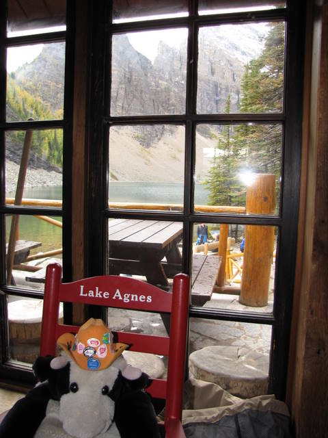 Als we aankomen in Lake Louise Village is het droog. Via het bezoekerscentrum rijden we naar het HI hostel. Hier is de actie drie nachten slapen, twee betalen en daar houden wij van. We gaan naar het meer en maken hier, ondanks de zware bewolking, de beroemde foto van de Queen Victoria gletsjer achter Lake Louise. We maken ons op voor een wandeling naar het theehuis bij Lake Agnes. In totaal is dit 10,8 kilometer lopen en we krijgen een hoogteverschil van 495 meter voor de kiezen. We wandelen in ruim anderhalf uur naar boven. Bij aankomst trakteren we ons op thee met bananenbrood en rusten even lekker uit. Als bonus wandelen we daarna naar het uitzichtpunt bij Little Beehive vanuit hier hebben we uitzicht over de vallei waar Lake Louise en het bijhorende dorp inliggen. Voor we naar beneden gaan wordt een foto gemaakt van de omliggende bergen en houd deze even in gedachten.