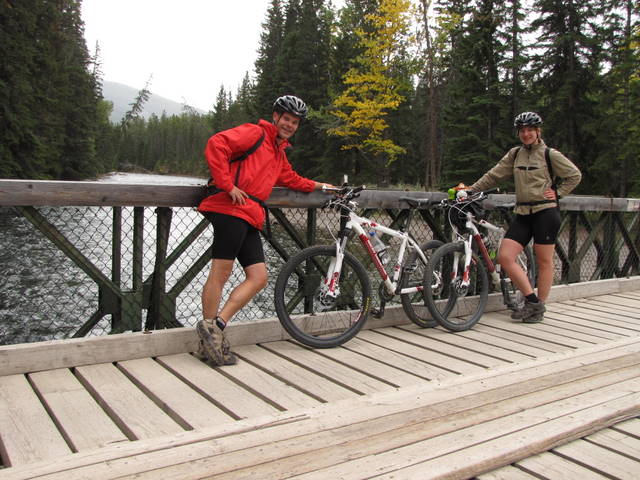 We arriveren bij ons tweede wildhostel. Deze ligt weliswaar aan dichtbij de highway (weinig autoverkeer overigens) maar aan de achterkant is het uitzicht formidabel. De wortels met broccoli en aardappels worden genuttigd op een bankje met uitzicht op de vallei. Er blijkt niemand meer bij te komen en we hebben het hostel met manager voor ons alleen! We maken nog een kleine wandeling langs de rivier. Best wel een beetje spannend aangezien het hostel volgens de manager een huis grizzly beer heeft. Wij zien niet meer dan een muis en een prachtig stukje water waar de hoge bergen rimpelloos worden weerspiegeld. Totale afstand vandaag: 60 km.