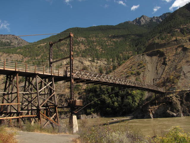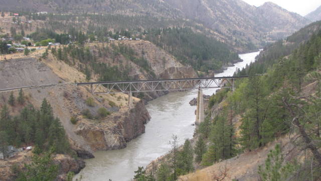 Buiten staat al een grote hoeveelheid aan spul maar binnen staat over twee verdiepingen nog veel meer. Behalve honderden isolatoren die aan de elektriciteitspalen langs de weg hebben gehangen kunnen we eigenlijk niet vinden wat we zoeken. We vragen het de baas en we blijken gewoon verkeerd te zoeken. Buiten staan namelijk nog twee grote zeecontainers en één daarvan ligt tot de nok toe vol met elektriciteitsspul en loodgietersspullen. Lichtelijk getraumatiseerd van de vele oude spullen komt onze Koen na ruim een uur weer naar buiten en adviseert bij deze zijn opdrachtgever om een nieuwe vitrinekast te vragen voor zijn verjaardag. Voor de eigen collectie kopen we nog een Indiaans muziekinstrument van de Noordelijke Haida Carrier of Chilcotin stam. Als we de weg vervolgen snappen we waarom de antiekshop zoveel isolatoren had, langs de weg die we nu volgen staan meerdere rijen elektriciteitspalen helemaal vol gehangen met isolatoren. Als we de Marble Canyon inrijden wordt het landschap dor. De bergen zijn ruiger en er is wederom veel leisteen en zand te zien. Regelmatig vallen hier stenen naar beneden en we ontwijken dan ook behendig vuistdikke stenen. Het volgende stuk is flink dalen en dan nog komen mooi hoog boven Lilliout uit.
