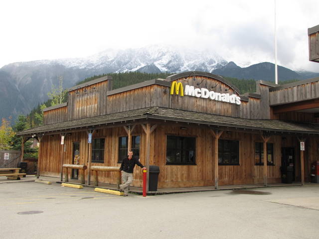 Onderweg zien we diepe dalen met een kolkende rivier, stenen op de weg en scheuren in het wegdek, talloze steenlawines die zijn geweest in de afgelopen jaren en weer de eerste besneeuwde bergtoppen sinds we de Rockies uit zijn. In het laatste stuk van de ‘coast cariboo’ route is men met de weg bezig. Dit betekend steil omlaag, maar dan zonder vangrail. Er staan slechts wat betonnen duploblokken om de steenlawines op te vangen. Dan komen we uit in Pemberton, een plaatsje in Western style. Zo is dus ook de Mac volledig uit hout opgbouwd. We besluiten om de Mac eens te proberen en bestellen een Mac Flurry en een milkshake. Na een paar happen van de Mac Flurry blijkt dat deze helemaal niet gemixt is. Rhianne gaat terug om te vragen of ze dit nog even willen doen. Haar ijsje wordt pardoes in de prullenbak gegooid en er wordt iets gebrabbeld dat er iets op is en ze 2 nieuwe krijgt… En zo geschiet, Rhianne krijgt 2 (net iets kleinere) snack size Mac Flurry’s. Heerlijk, maar wel iets te vullend. Bij deze Mac zijn ze ook op zoek naar nieuwe werknemers; bij de kassa ben je het gezicht van de Mac, als kassamedewerker bij de Mac Drive krijg je een coole headset en als je meer iemand bent voor achter de schermen kan je zorgen dat het eten een hoogwaardige kwaliteit heeft. Vet man!! Als je het maar leuk omschrijft worden zelfs de simpelste baantjes geweldig stoer. Propvol van de ijsjes en de milkshake rijden we verder naar Whistler.