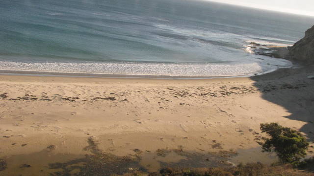 Een lagune en waterpartijen met fel groene, rode en gele plantjes betekent eindelijk het begin van het traject langs de oceaan. We hebben vrij uitzicht zover als we kunnen kijken en de zon die inmiddels wat lager komt zorgt voor veel schittering op het water. Lin gaat helemaal los als hij de hoge (surf)golven ziet. Hij verteld dat een groot stuk van dit traject privégrond is van de Holester Ranch. Hierdoor moeten strandliefhebbers grof geld betalen als ze hier willen komen. Heel apart is het om te zien dat de oceaan helemaal vlak wordt als de hoek gepasseerd wordt waar de scheiding ligt tussen Noord en Zuid Californië. We spotten zelfs wildlife vanuit de trein. Vele tientallen pelikanen duiken continu in het water op zoek naar lekkere visjes en een groep dolfijnen passeert vlak onder de kust. Ze vormen een mooie aanvulling op de eerdere gespotte roodstaart havik en de edelherten.
