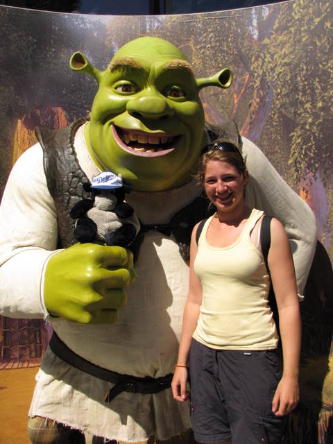 Bij het Chinese Theater liggen allemaal stenen voor de deur van beroemdheden met hun handen en voeten in cement. Er lopen vele stand-ins van bekende filmfiguren rond tegen een kleine vergoeding kan hiermee op de foto gegaan worden. Daarnaast zijn er vele mensen die denken dat ze een filmster zijn en op één of andere manier aandacht vragen. Ze verkopen cd’s, zingen wat of doen wat goocheltrucjes. Ergens verstopt aan de zijkant van het theater zit een hele leuke beer-maak-shop. Koen is niet te houden en binnen een kwartier zijn alle stellingen doorzocht. Uiteindelijk koopt hij een nieuwe baseballpet van de LA Dodgers waarmee hij zijn cowboyhoed kan afwisselen. Aan de overkant van de straat zit de Disney Soda Fountain and Studio Store, een lange naam voor een Disney winkel met barretje. Natuurlijk proberen we hier nog wat leuke souvenirtjes bij elkaar te shoppen. Shoppen doen we ook nog even bij de Hollywood supermarkt voor ons middageten. Wij verwachten een dure lunch maar aangezien de zelfkassa teveel wisselgeld geeft zijn we erg goedkoop uit.