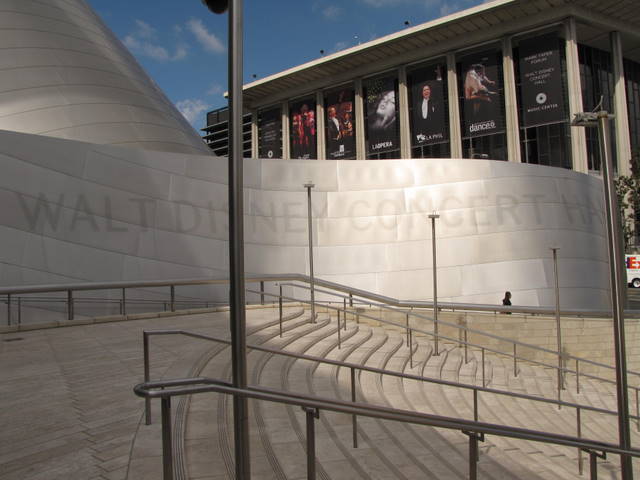 4 oktober. We worden deze ochtend eens wakker door iets anders dan een snurkend persoon. Een Aziaat is nogal verkouden en haalt elke minuut toch wel zijn neus op. Dat geluid zijn we snel zat en we ontvluchten onze kamer voor de keuken. Met heel wat moeite krijgen we ons nieuwe verslag eindelijk online. Genoeg leesvoer voor het thuisfront en wij kunnen een nieuwe starten. Nogal ongebruikelijk voor Los Angeles in deze tijd van het jaar is het bewolkt. Gelukkig is het buitje net gevallen voor wij de deur uit gaan. De rest van de dag willen we wat spullen kopen en downtown LA verkennen. Met wederom een omweg vinden we het toeristenbureau. Het leukste lijkt ons de Walt Disney Concert Hall met buitentuin en de oudste boerenmarkt van Californië. De wandeling naar het concertgebouw neemt wat langer in gebruik dan gehoopt en het is ook nog eens niet wat we verwachtten.