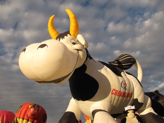6 oktober. Als we vertellen dat we om 5.30 uur bij de bushalte staan, dan hoeven we niet te vertellen dat we weer eens bijzonder vroeg opgestaan zijn ondanks dat de nachttrein zijn sporen nog nalaat. Tsja alles voor het goede doel, we gaan naar het grootste luchtballonnen festival ter wereld en zonder auto was dit de beste oplossing. Het begint een klein beetje licht te worden tijdens de trip. Met een overstap staan we een uur later op het festivalterrein en dat is groot! Verspreid over een veld dat meerdere voetballenvelden meet worden luchtballonen gevuld. Niet zomaar luchtballonen maar de meest uiteenlopende figuren reizen één voor één op. Wat dit festival echt heel bijzonder maakt is dat bezoekers tussen de luchtballonnen over het veld mogen lopen. We zien een groot bierglas, een vlinder, een zonnebloem, spiderman een varken. Dan gaan we het veld rondlopen en zien we de Duitse brandweer wagen die we vorig jaar op het Nederlandse ballonfestival in Barneveld zagen. Daar komt de Nieuw Zeelandse kiwi, het kan niet op. Dan wijst Koen ons wel op een hele leuke ballon, namelijk een Koe van bijna dertig meter hoog en veertig meter lang. Fantastisch!