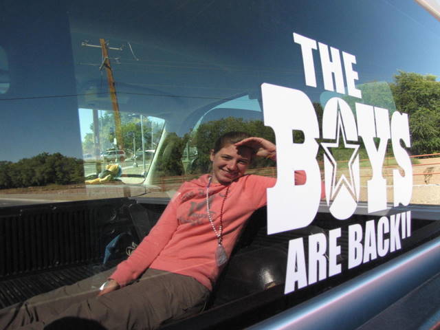 We komen niet meer bij van het lachen en krijgen uiteindelijk zelfs nog een heus diploma op naam en ondertekend door piloot Barney. Dan is het alweer tijd om op te ruimen en de mensen zijn zo vriendelijk om ons even met de pick-up truck bij het hostel af te droppen. We kruipen achter in de open bak en verlaten voor de laatste keer het festivalterrein waar we zoveel herinneringen hebben liggen. We sjezen door de stad en genieten van het ritje.