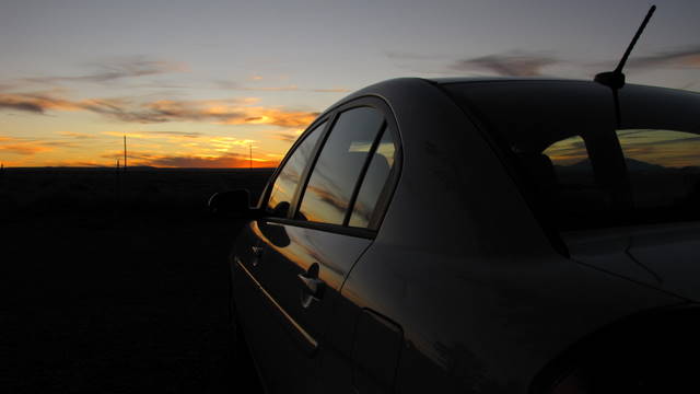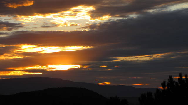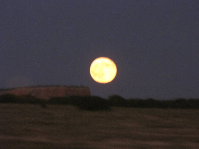 We kunnen zelfs de brandsporen zien van de vuurtjes die gestookt werden in de huizen. Jammer genoeg zijn er eind 1800 veel originele attributen gestolen door souvenirjagers waardoor nu alleen nog de huizen over zijn. Er is een wandeling uitgezet van anderhalve kilometer met een hoogteverschil van 240 traptreden. Pas om 16.00 uur zijn we klaar en rijden we verder naar onze volgende bestemming, de meteoorkrater in de buurt van Winslow. Het is te laat om deze nog te bezoeken, dus zoeken we een plekje voor onze auto op de dichtbij gelegen RV camping. Ook deze Hyundai blijkt prima om te bouwen tot slaapplaats met behulp van de aanwezige houtblokken. Met een prachtige zonsondergang eten we ons diner op een picknicktafel. We verplaatsen ons naar de recreatieruimte voor thee en een heerlijke ananaspie, dit stukje gebak hebben we nog over van gisteren. Jammie! We werken het verslag nog even bij, terwijl de stinkende automatische geurverfrisser (luchtverfrisser, red) elk kwartier even van zich laat horen en ruiken. Totale afstand vandaag: 59 mile.