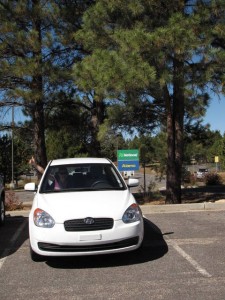 13 oktober. Direct na het ontbijt en de was Skypen we met de moeder van Erwin die vandaag jarig is. We hebben een tijdsverschil van negen uur dus in Nederland dus daar is het nu tijd voor avondeten. Erwin zijn broer en zus met kids zijn er en ook de ouders van Rhianne komen langs. Op afstand vieren we het feestje mee. Dat blijft wel heel gek via de computer. We bietsen wat budget bij elkaar om ons eigen gebak te kopen en hangen dan weer op. We doen wederom een handwas en gaan dan onze nieuwe huurauto ophalen op het vliegveld. De enige manier, behalve bijna zeven mijl lopen, blijkt een taxi te zijn. Dit doen we dan maar en voor zestien dollar worden we met een grotendeels van binnen versleten taxi naar onze bestemming gebracht. Dit maal hebben we een goede deal kunnen sluiten met de Engelse website van Ebookers. Voor 550 euro huren we voor vier weken een standaard auto inclusief verzekering. Een zelfde maat als de auto in Canada. Als de noodzakelijke papieren zijn ingevuld krijgen we de sleutels van een echte Kia, gevalletje klein. Deze blijkt nogal onder de honden haren te zitten en ook nog eens een economy auto te zijn.