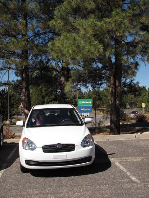 Voor we vertrekken vullen we onze watervoorraad aan bij één van de gratis tappunten. We hebben voorlopig weer genoeg. We rijden via het Kaibab forest richting Flagstaff. Deze weg is wat saai en op de bomen zijn we al snel uitgekeken. Het enig noemenswaardige wat we zien zijn de San Fransisco Peaks, een dood hert en een aantal gecontroleerde vuurhaarden die net vuurpotjes zijn. In Flagstaff rijden we een file in veroorzaakt doordat alle straten naar de hoofdstraat zijn afgesloten. Nieuwsgierig na wat er te doen is rijden we langs het bezoekerscentrum. Studenten vieren Home Comming . Wat inhoudt dat oude studenten terugkomen naar de stad van hun oude school en dit vieren met een parade en een vaak een sportevenement. We beslissen hier niet naar toe te gaan en door te rijden naar Sedona. Hiervoor pakken we scenic highway 89A. We bezoeken het visitorcentre bij het Oak Creek uitkijkpunt. Dit geeft ons gelijk de gelegenheid om het begin van de roodkleurige vallei te bewonderen en de prachtige slingerweg die we zo dadelijk naar beneden gaan rijden. Onze parkjaarpas is ook hier geldig en spaart ons weer een dagpas uit. De parkranger waarschuwt ons voor grote drukte doordat de herfstkleuren veel mensen laat overkomen uit Phoenix en het nu ook nog eens weekend is.