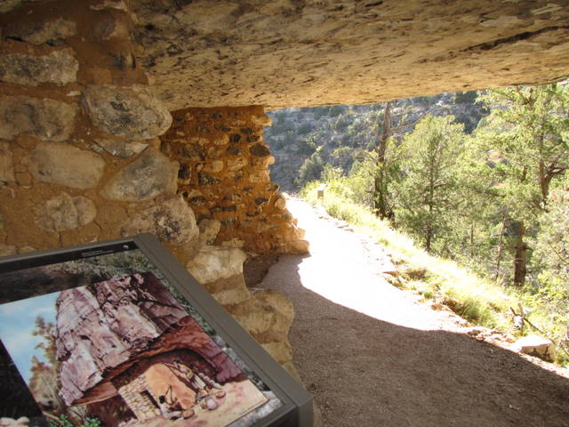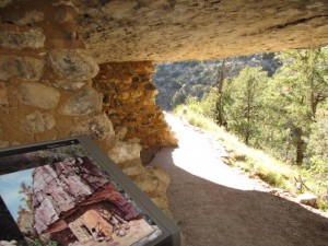 Voor we Flagstaff verlaten gaan we nog eenmaal naar de grote supermarkt voor ons avondeten en een reserve voorraad water. We rijden veel door de woestijn en dan is water altijd handig. Het eerste stukje rijden we over de oude ‘Route 66’. Het is erg jammer dat de Amerikanen de weg niet heel goed meer aangeven en vooral dat het meeste niet meer bestaat door de aanleg van Highway 40. We stoppen bij Walnut Canyon. Begin 1100 is het Sinagua volk gestart met bouwen van rotswoningen in deze vallei. Nu zijn nog steeds heel veel sporen van deze huizen te zien en sommige zijn nog bijna volledig intact.