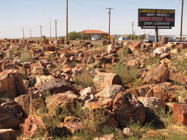 16 oktober. We slapen vandaag uit en dat was na een nacht slecht slapen in de auto niet erg moeilijk. Vandaag is een rustig dagje waarbij we als doel hebben naar één van de stenenwinkeltjes te gaan die het dorp rijk is. We kiezen om naar de allergrootste te gaan die volgens de eigenaar van het motel meer versteend hout heeft dan het nationale park zelf. Dit hout komt van privéterrein en wordt van 30 feet diep opgegraven.