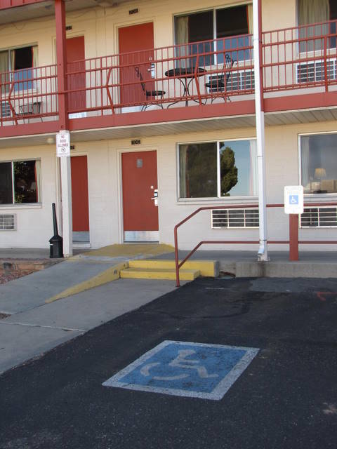 We maken wat foto´s en kijken of de Navajo verkopers nog wat moois te bieden hebben. We zien meerdere dode coyotes dood op de weg liggen, wat inhoudt dat hier blijkbaar heel wat wildlife moet zijn. Net voorbij Cow Springs wordt linksaf de 98 opgereden, een scenic way richting Page. Deze weg heeft inderdaad erg mooie uitzichten. In het kleine plaatsje Shonto waar bij de handelspost een flinke hoeveelheid zand ons om de oren vliegt doen we nog een poging wat leuks te kopen, helaas zonder resultaat. De onverharde weg naar het Navajo National Monument vinden we een te grote uitdaging voor ons tweewielig aangedreven Hyundai dus we rijden door naar Page. Net na het middaguur komen we aan bij de parkeerplaats van de Antilope Canyon. Door de vorm en ligging van de Canyon moeten hier hele mooie zonlichteffecten te zien zijn. Helaas blijkt dit alleen met een dure tour mogelijk te zijn dus gaan we eerst naar de stad. Het is Navajo gebied maar zonder daglichtbesparing dus de tijd moet weer een uurtje terug. Wij snappen het niet meer. Een snelle blik op internet heeft geleerd dat Rodeway Inn één van de goedkoopste motels in town is met gratis ontbijt en ze blijken nog plek te hebben. Aangezien onze kamer nog schoongemaakt moet worden kunnen we er pas over een uur in. Daarom gaan we eerst het stadje eens even verkennen. We bezoeken wat leuke winkeltjes en een supermarkt voor de lunch. Ruim een uur later krijgen we de pasjes voor onze kamer. Deze bevindt zich op de onderste verdieping en we hebben een oprijlaan voor de deur. Het kijkgaatje in de deur zit lager dan die bij de buren en binnen blijkt het aanrecht erg laag en het bad ook. Het blauwe bordje op de deur verklaart alles, we hebben een rolstoelvriendelijke kamer.