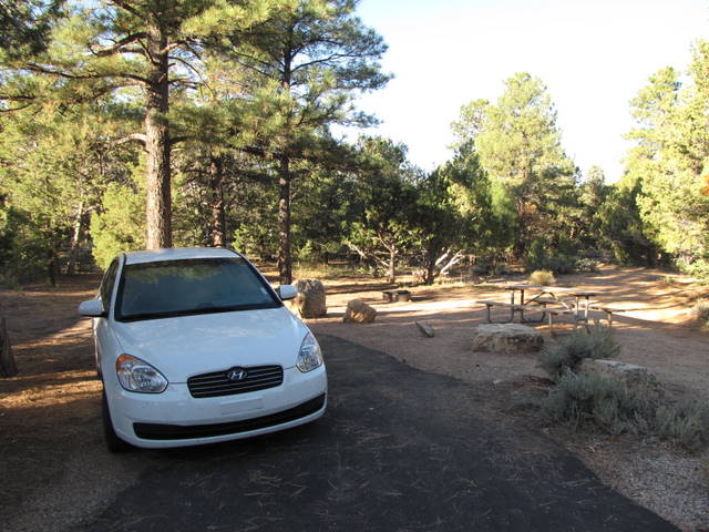 Gelukkig toch nog een positieve wildlife ervaring. Het laatste uitzichtpunt voor de camping is het Grandview Point. Wederom een prachtig uitzicht over de Canyon. Het inchecken op de camping gaat soepel en het mooie plekje 91, is voor ons. We verlaten de camping weer om naar Yavapai Geology Museum te rijden. Niet voor het museum, maar voor een prachtige zonsondergang. Om half zeven zijn we terug op de camping en steken het kampvuur aan. Het soepblikje gaat erop en in de auto prepareren we guacamole tortilla´s. Op de houtblokken die we dan nog over hebben warmen we thee op en eten onze marshmallows met chocokoekjes. De uitvinding van vandaag zijn gevulde petflessen met kokend water die dienen als kruik. Een heerlijke aanvulling op de warme slaapzakken met lakenzakken. Aangezien het vannacht rond het vriespunt zal worden. Na een rondje te hebben gereden is de auto lekker opgewarmd. Op de terugweg zien we nog een coyote lopen op de camping. Dan gaan de stoelen plat en slapen maar! Totale afstand vandaag: 150 mile.
