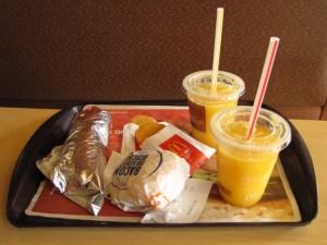 Er is zelfs een lekker warm zonnetje. Na een korte pauze starten we de terugweg, de Kings Canyon latende voor wat het is. Uiteraard gaat ook de terugweg niet zonder hindernissen. We zijn het park nog niet uit of we rijden een zeer dichte mist in die ons een paar keer verplicht tot stapvoets rijden. Afijn na vijf mijl komt de zon terug, kleurt de sky de allermooiste kleuren en zijn de problemen voorbij. De laatste vijftig mijl gaan soepel en nog voor het donker is rijden we Fresno binnen. Zoals wel vaker boeken we onze Inn via de Wi-Fi van de McDonalds op de website van Booking.com. Ambasador Inn Ensuite, de buren van de Mac, blijkt een goede aanbieding te hebben voor een kamer en hier checken we dan ook snel in. De enige minpuntjes zijn de geluiden van de McDrive en af en toe de hoorn van een trein. Soms lijkt het wel of er een tank door de Mcdrive heen komt rijden. Net als de zeer grote kamer met kingsize bed en lekkere bank is ook de Wi-Fi is bijzonder goed. We bereiken maximaal de 5.500kb per seconde en dat is zo snel dat binnen no-time onze dropbox, voor het back-uppen van de uitgezochte foto’s en filmpjes, vol is. Dan vinden wij het welletjes en gaan slapen.