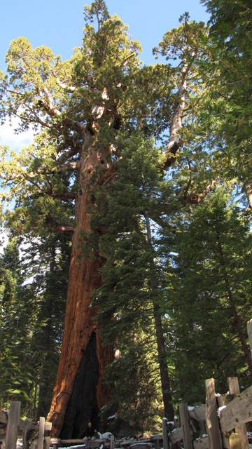 8 november. Als we wakker worden Skypen we met de ouders van Rhianne, nemen een overheerlijke douche en ruimen de auto in. Bij deze Inn hebben we ontbijtvouchers gekregen voor de buren en de goede lezers weten dat dit de McDonalds is. Niet dat het een werelds ontbijt is maar de McSkillet Burrito with Sausage, de Bacon, Egg & Cheese Biscuit en de Hash Browns met verse jus d’orange zijn in ieder geval meer dan de standaard muffin met koffie. De auto wordt afgetankt voor een nieuw avontuur. Er is nog genoeg tijd over om een bezoek te brengen aan Yosemite Park, volgens zeggen een van de mooiste parken van Amerika. We hopen dat de wegen vandaag beter zijn dan gisteren. Het weer ziet er in ieder geval veel belovend uit: zonnig! Zo draaien we highway 41 op naar Oakhurst. Hier vragen we de wegcondities voor de rest van de weg naar de zuidelijke parkingang. De medewerkster van het bezoekerscentrum heeft goed nieuws. De wegen zijn goed en sneeuwkettingen zijn niet aanbevolen. Opgelucht boeken we in Oakhurst opnieuw een Inn, pakken daarna de slingerweg omhoog en we komen prima aan bij de entree. Deze komen we, net als de andere parken gratis binnen met onze jaarpas, die we inmiddels terugverdiend hebben. Yosemitepark heeft ook een aantal mammoetbomen maar deze zijn niet zo hoog als in Sequoia National Park en er zijn er ook een stuk minder.