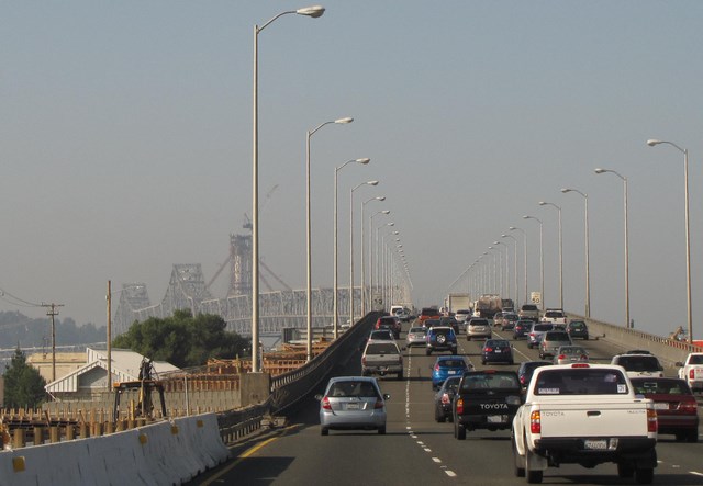 Bij de grote supermarkt droppen we ons afval en gaan dan, in de ochtendspits, op weg naar de grote stad. Via de zeer lange dubbellaags Bay Bridge komen we de stad in. Voor één keer vinden we het niet erg om tol te betalen. Want het geeft ons de gelegenheid over een prachtig wegenkunstwerk te rijden. Zoals gezegd eerst naar het hostel en dat valt nog niet mee door alle eenrichtingswegen die niet op onze kaart staan. Als de spullen in de berging staan moeten we een paar straten opschuiven naar het autoverhuurbedrijf. Via één van de enorm steile wegen, die soms meer dan 40 graden zijn en waar ook de oude straattram rijdt, komen we hier veilig aan. Ook de laatste auto is afgeleverd en deze keer maar goed dat we no-risk hadden. De rechterbuitenspiegel is getorpedeerd door een andere auto en de ducktape van Rhianne haar verjaardagsbanner zit een beetje te vast op de achterruit. Er wordt niets van gezegd en weer een stukje afgesloten van onze reis. We lunchen in het hostel en kunnen dan vervroegd inchecken.