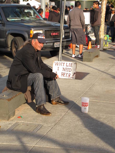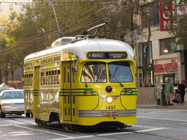 Bij de McDonalds doen we nog even de hamburgertest. De zoveelste in de afgelopen weken. Het is een gedeeld succes. Het broodje is een beetje droog en zwart maar wel goed belegt. De burger is best lekker te noemen. Natuurlijk nemen we nog een liter Sprite voor een dollar en hervullen de beker als we het pand verlaten. De volgende topper van de dag is het ritje met de Muni Streetcar tussen Powell and Market. Deze oude tram wordt door een ondergronds mechanisme over de steile hellingen heen getrokken. Natuurlijk gaan wij volgens traditie hangen aan de buitenkant van de tram zoals echte mensen uit San Francisco dat ook doen.