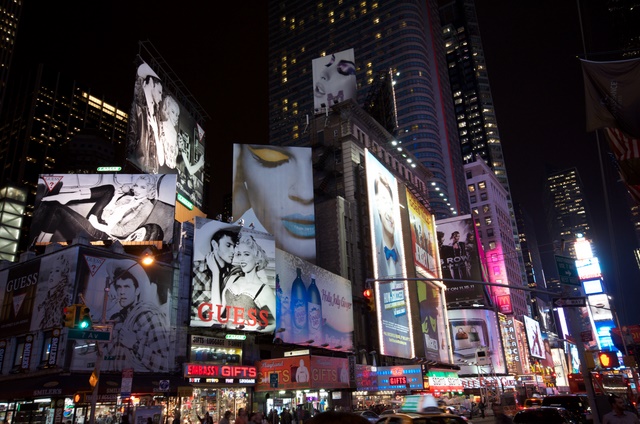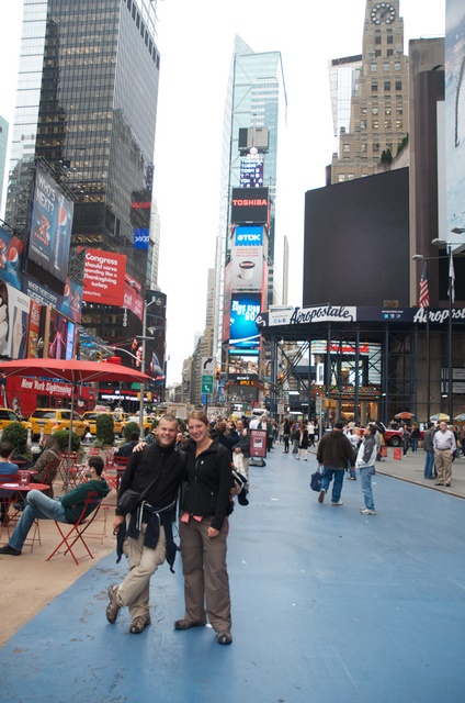 15 november. Als we uitgeslapen hebben tot negen uur, is het tijd om een planning te maken. We hebben besloten voor 175 dollar een New York City Pass aan te schaffen. Hiermee kunnen we de komende zeven dagen gratis in 70 attracties en krijgen ook nog eens korting op restaurants, winkels, enz. Nu we eenmaal uitgezocht hebben wat we willen doen en een reservelijst hebben gemaakt voor het geval we tijd overhouden kunnen we de attracties combineren met de activiteiten buiten de City Pass om. Dit hoeft alleen nog even per dag op wijk gelegd te worden zodat we niet kruisdol worden van het wijkhoppen. Voor we dit gaan doen beslissen we eerst maar naar het bezoekerscentrum op Times Square te gaan aangezien het al bijna twaalf uur is en we ook nog fietsen willen huren voor vanmiddag. Dit kan namelijk alleen nog vandaag gratis. We hebben ons een beetje verdiept in het metrosysteem van New York en dat is Amerikaans simpel. Er zijn maar liefst vierentwintig verschillende Subway-lijnen die allemaal een nummer of een letter hebben. Daarbij zijn de borden met zwart net zo donker als de metrostations zelf. Het behoeft dus soms wat navraag om op de juiste plek te komen maar het went snel. In één keer komen we uit op het metrostation op de kruising van Broadway en Times Square. Eenmaal boven de grond lopen we het straatbeeld in die zo vaak op televisie te zien is. Het ene LCD scherm is nog groter dan de andere en hetzelfde geldt voor de wolkenkrabbers. De fototoestellen komen uit de tas en we worden als het ware de menigte ingezogen.