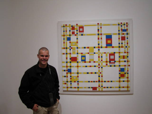 17 november. Het weer is nog steeds wisselvallig maar dat is niet erg met een grotendeels binnen programma. Via een lange winkelstraat gaan we richting het museum voor de moderne kunst, het MoMA. Voor we daar zijn kopen we bij een grote vestiging van Build-A-Beer warme kleding voor onze twee kleine zwart-witte reisgenoten. Slechts met grote moeite krijgen we ze weer mee naar buiten. Het liefst hadden ze kleren blijven passen en rond blijven rijden in de gele New Yorkse taxi en op de motor. Het MoMA is een zeven verdieping tellende museum met kunstobjecten van bekende en minder bekende kunstenaars. De ruim opgezette exposities bevatten vele mooie kunststukken. Toch zijn het vooral de bouwkundige maquettes, bekende meubelstukken en de werken van de bekende kunstenaars die van ons de meeste aandacht krijgen. Zo is er de kruiwagen van Rietveld en een aantal doeken van Picasso, Van Gogh en Mondriaan.