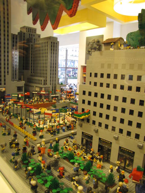21 november. We pakken de metro naar het Rockefeller centrum. Hier in de buurt zit het Firedepartment museum. We denken hier wat te kunnen opsteken van de beroemde New Yorkse brandweer. Helaas is een rondleiding door de kleine ruimte niet mogelijk aangezien er een groep schoolkinderen rondloopt. We laten deze attractie dan ook voor wat het is en gaan in de kelder van de Rockefeller naar de Starbucks. Langs de schaatsbaan, met grote Swarovski ster, die naast het beroemde gebouw ligt lopen we naar de Lego Store met een grote groene draak door de hele winkel. In de ruim opgezette winkel kunnen allerlei bekende en minder bekende doosjes van de Deense stenenbouwer gekocht worden.